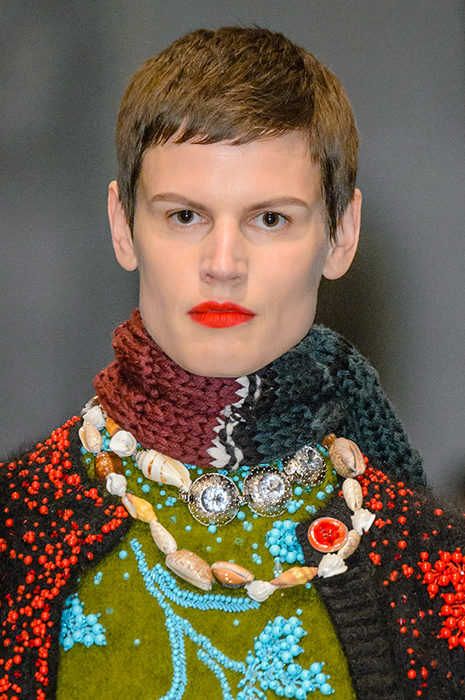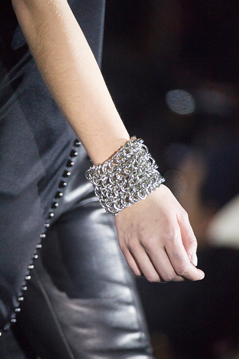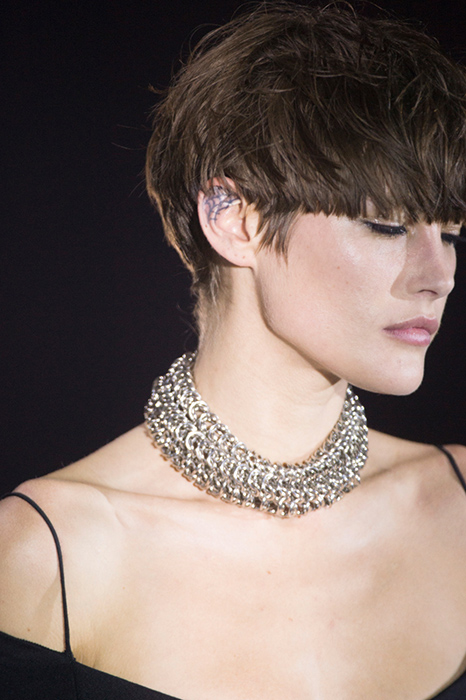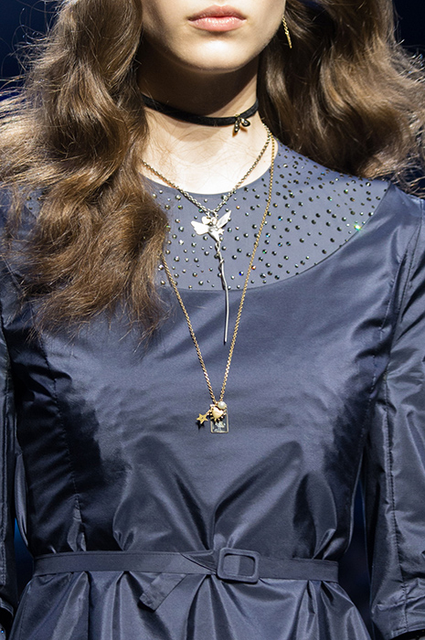 Что касается украшений, то здесь дизайнеры продолжили тенденцию этой весны на максимализм — крупные цепи-подвески и браслеты, внушительные серьги всевозможных форм, усыпанные драгоценными камнями чокеры и сережки-септумы.