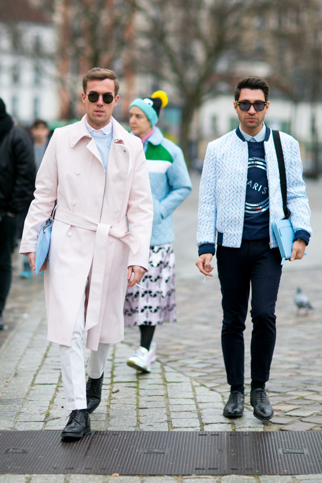 Устав от черно-серых сочетаний, гости парижской недели мужской моды наконец решили добавить на улицы города немного ярких красок — и почему-то дружно, словно сговорившись, нарядились в вещи 50 оттенков голубого. Логически объяснить такое решение коллективного модного разума невозможно, но это и неважно: главное, что серый цвет наконец отступает. Скорее всего, ответственна за эту смену курса приближающаяся неделя высокой моды, которая пройдет здесь же, в Париже, уже сегодня вечером.