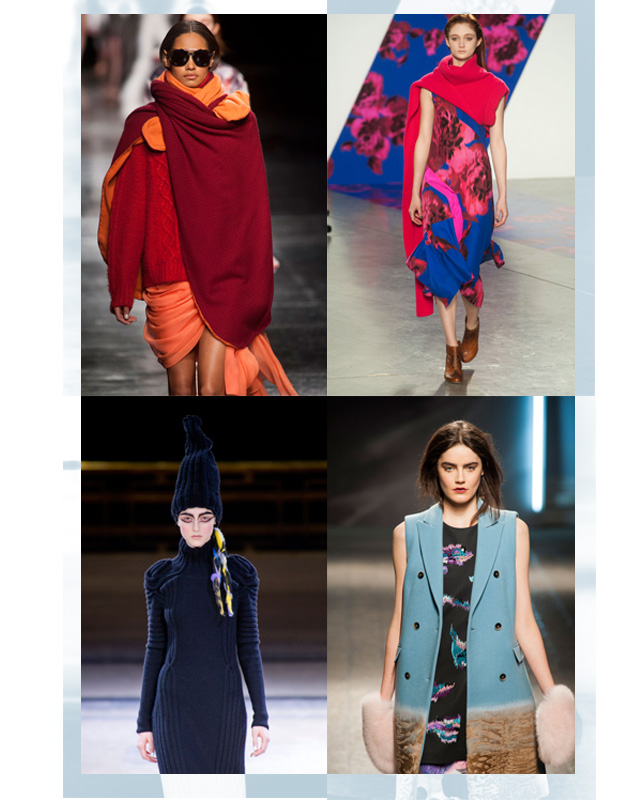 По программе oversize в этот раз дизайнеры создавали не только верхнюю одежду и свитера, но и аксессуары. Если шарф, то такой, чтобы в него можно было завернуться целиком и не один раз, если шапка или шляпа, то обязательно размером как минимум с целую голову.