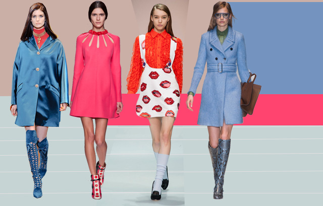 Хотя выделять как отдельную модную тенденцию возвращение одного из стилей XX века в последнее время стало едва ли не моветоном, закрыть глаза на повальное увлечение дизайнеров шестидесятыми мы не можем. Saint Laurent, Gucci, совершенно неожиданная коллекция Versace и первый показ Николя Гескьера для Louis Vuitton — список шоу, на которых были замечены девушки-моды, можно продолжать бесконечно.