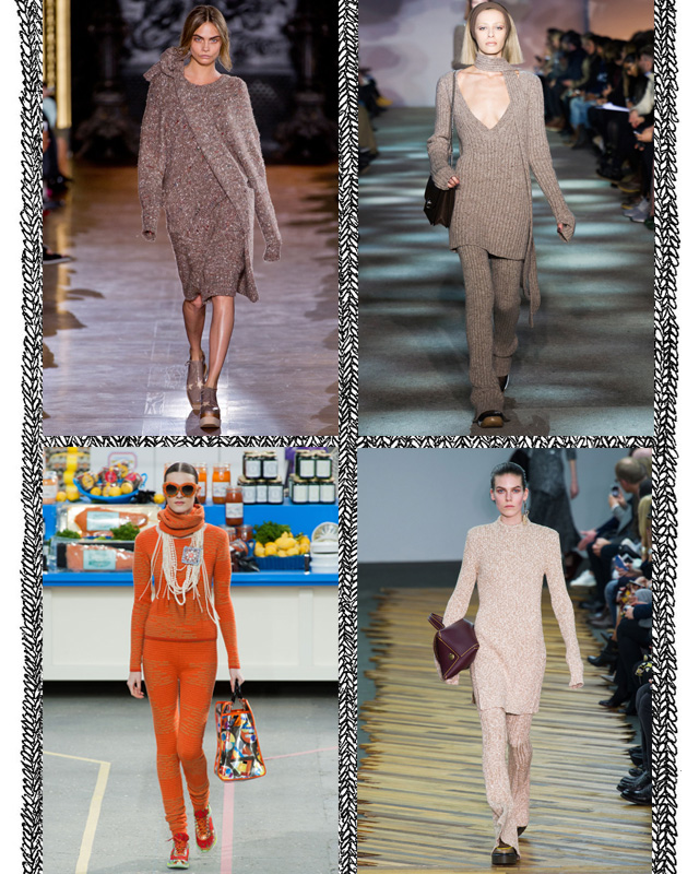 Вязаные "лапшой" и не только костюмы из брюк и удлиненных свитеров и туник или свитеров и юбок, цельные вязаные платья — этот уютный и расслабленный тренд нам уже нравится. А мохер, к которому мы уже успели привязаться этой зимой, тоже не желает никуда уходить.