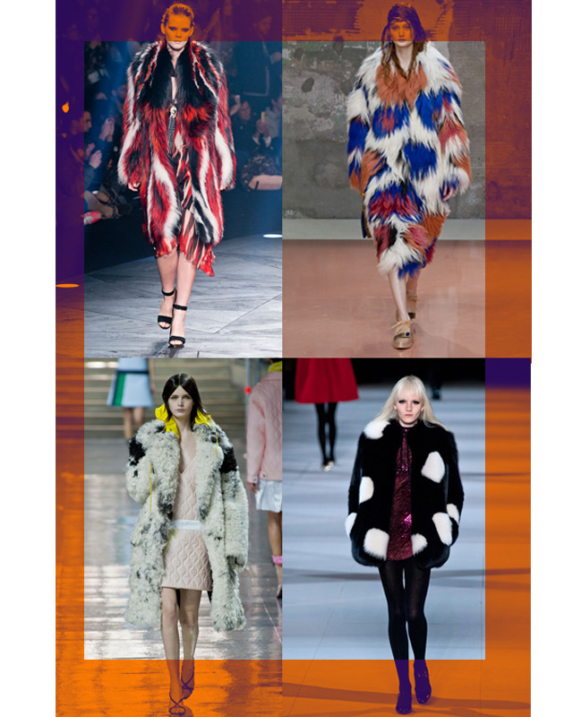 Мех в этом сезоне встречается, конечно, и в классических вариантах, но куда больше внимания привлекают безумные расцветки и невероятные, почти взрывные объемы. Шубы в крупный горох у Saint Laurent (что ни говори, а Эди все же знает, как зацепить покупателя), опасные расцветки Roberto Cavalli и Alexander McQueen, разноцветная клетка у Roksanda Ilincic и Altuzarra.