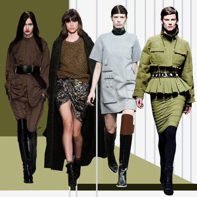Сильные женщины-амазонки снова совершают набег за набегом на подиумы всех четырех недель моды. Камуфляж (пусть и из кусочков цветного меха), защитные цвета и комбинезоны летчиков, военные сапоги и элементы парадной военной формы, даже сумки перевязи — надеемся, что это все останется модной тенденцией исключительно в одежде.