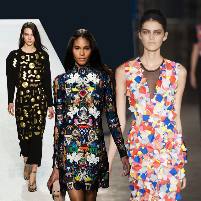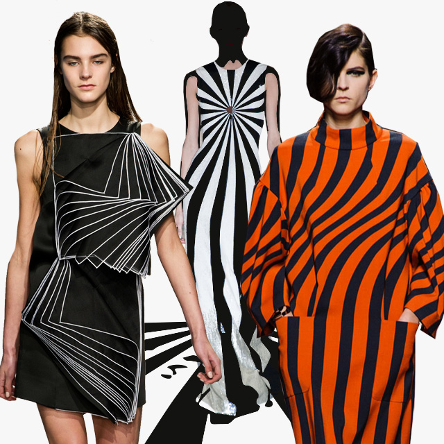 Из тех же шестидесятых, но из их более психоделичной составляющей, вернулся и оп-арт, бывший одним из главных трендов прошлой весны: классические черно-белые головоломки у Matthew Williamson, психоделичные зигзаги и воронки Dries Van Noten. К ним добавляется более современный способ игры с пространством и формами, похожий на 3D-моделирование и компьютерную программу 3D Studio Max.