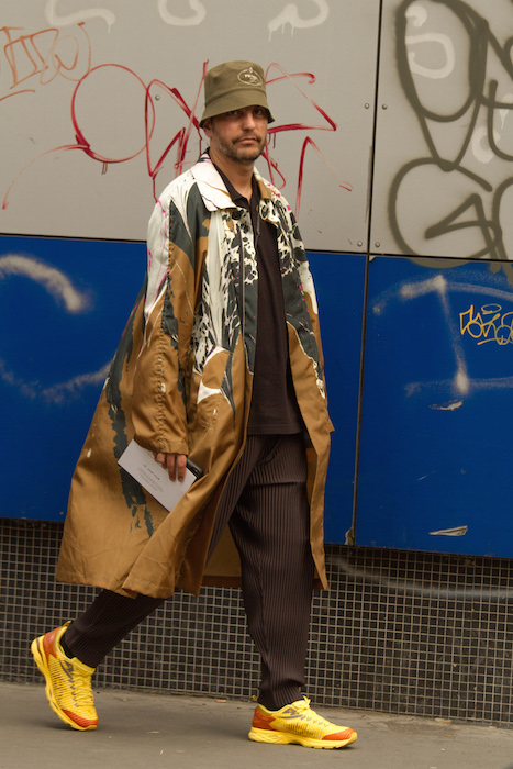 Искусство — безусловный козырь в веренице тенденций. Поэтому в новых коллекциях мы часто находим вещи на стыке с искусством. И в стритстайле тоже: смотрите, как гости Недели мужской моды в Париже носят рубашки, напоминающие гобелены, вещи из совместной коллекции Dior и Хадзимэ Сораямы, а еще жакет Off-White, расписанный уличным художником Футурой.