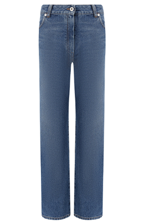 Укороченные джинсы синего цвета.