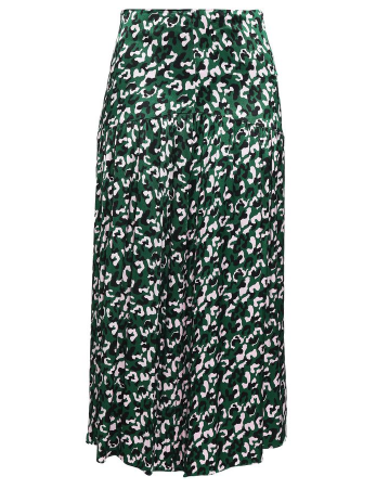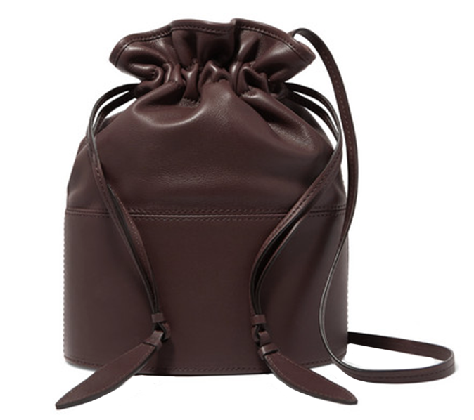 Сумки с эффектом кожи рептилии остаются актуальными. За счет фактуры они смотрятся интересно и могут стать акцентом в лаконичных образах. В данном случае сумка разбавляет обилие темных оттенков и по цвету перекликается с принтом на юбке.