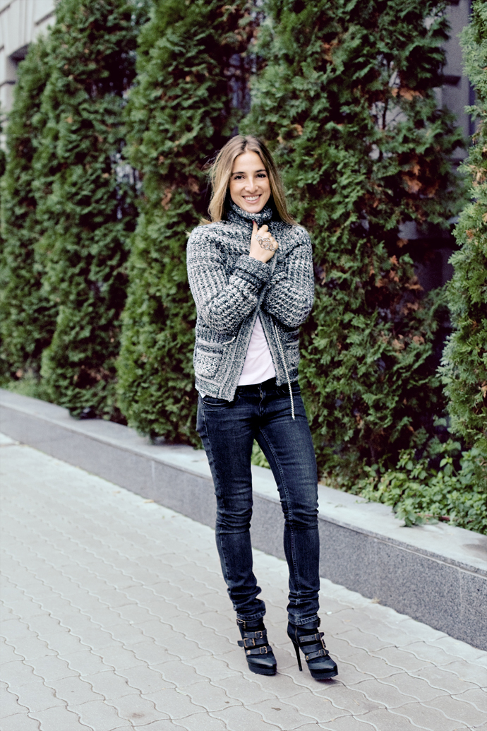Соня Гайдамак, дизайнер ювелирных украшений, вместе с сестрой Катей открыла собственную компанию Privé Jewellery by K&S Gaydamak, которая известна в первую очередь необычными браслетами: они носятся не на запястье, а на кисти руки, между большим и остальными пальцами. Соня — дочь предпринимателя Аркадия Гайдамака — настоящая космополитка: выросла в Париже, училась в Нью-Йорке, часто бывает в Москве. Ее стиль так же эклектичен, как она сама: демократичные марки Соня носит вместе в шубами Valentino и жакетами Chanel, безумно дорогие украшения — с белыми хлопковыми майками. Гайдамак выглядит, казалось бы, очень просто, но именно в этой правильной простоте чувствуется класс.