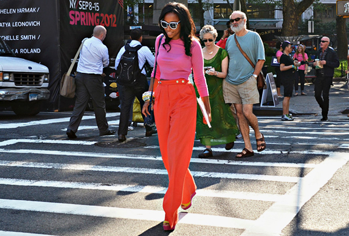 Самое неправильное сочетание цветов, по всем мыслимым и немыслимым модным канонам, как оказалось, выдает удивительно "вкусный" результат. Цвета, которые просто обязаны спорить друг с другом — сочный малиновый и яркий красный, — в сочетании смотрятся круто как на показах, так и на улицах.