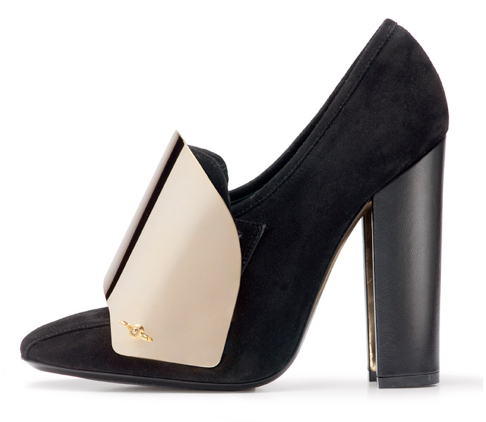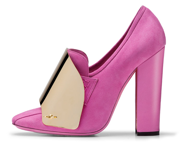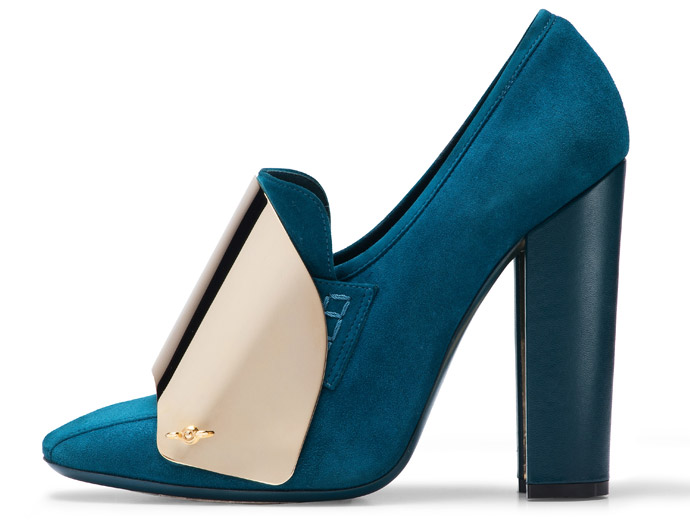 Замшевые туфли из летней коллекции Yves Saint Laurent нравятся абсолютно всем! Устойчивый каблук популярной в грядущем сезоне формы подкова, обтянутый кожей, очень практичен: устойчив и меньше пачкается. Красивая классическая форма а-ля лофер радует ультрасмелой золотой пряжкой, которая на манер доспеха закрывает тыльную сторону стопы. Но главное — туфли будут доступны в шести цветах на любой вкус, из которых нам больше всего нравится свежий весенний ментоловый и цвет морской волны, которые станут ключевыми оттенками будущего лета.