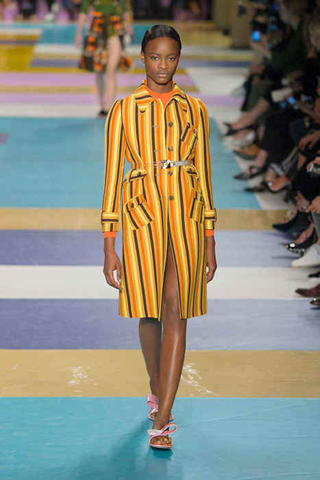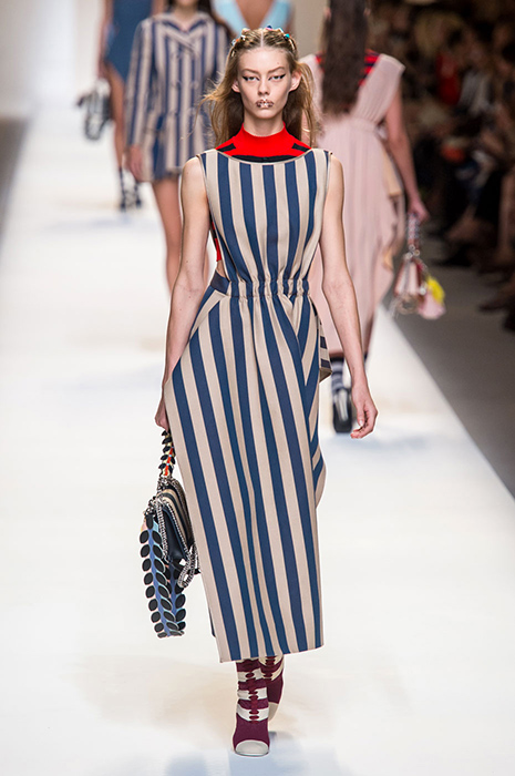 Miu Miu, Givenchy, Balmain и Gucci предпочли сдержанным цветам яркие оттенки: красные, оранжевые, желтые, сиреневые. Многие бренды решили не отказываться от классического монохрома и синего с белым, но смело обыграли это сочетание, расположив полоску вертикально. Например, Marques' Almeida, Fendi и Lanvin этой весной предлагают носить платья и костюмы именно с таким принтом, который, ко всему прочему, визуально стройнит и удлиняет силуэт.
