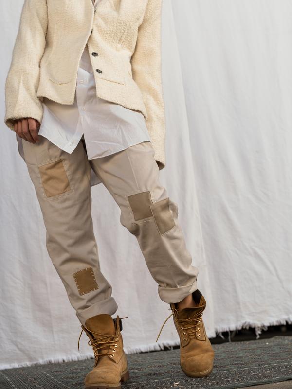 Концепция марки из Лос-Анджелеса звучит так: «0% new production. 100% transformation». Новые материалы бренд не использует вообще — в мастерской Atelier & Repairs работают только с готовыми вещами. Главное в этом деле — наладить отношения с другими брендами, которые бы поставляли старую одежду и аксессуары. Сегодня Atelier & Repairs работают с брюками Dockers, денимом Candiani, тряпичными шоперами из торгового центра в Далласе, большими местными марками и военными магазинами. Одни вещи расшивают цветными сложносочиненными заплатками, к другим добавляют карманы, третьи рвут и забрызгивают краской — каждое изделие единично и по-своему уникально.