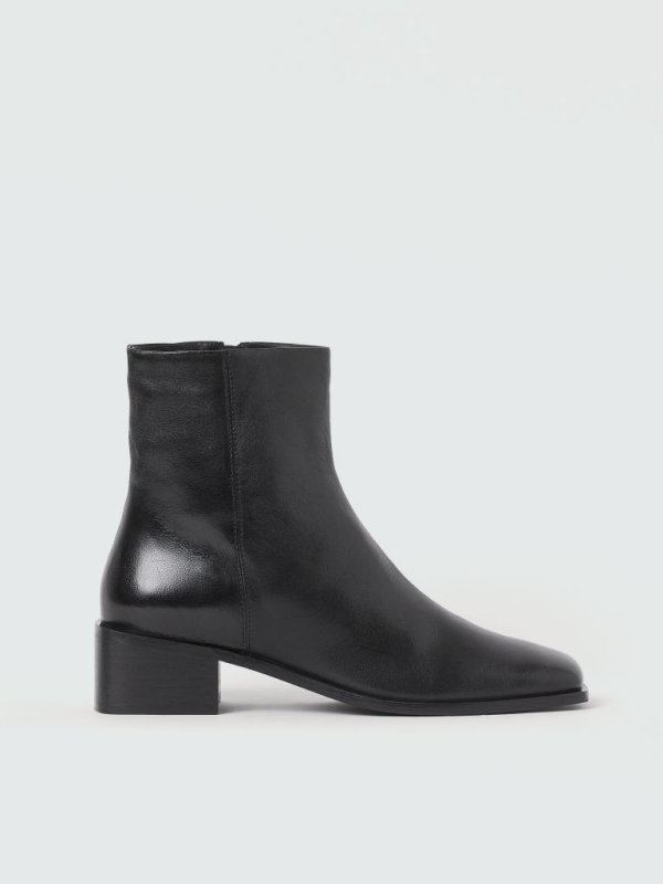 Если бы приходилось выбирать только одни ботильоны на осень, то это были бы они — лаконичные, нейтральной расцветки и на каблуке. Даже небольшой каблук задает другое движение — как говорил Маржела, это меняет силуэт. Осталось выбрать между квадратным и острым носом, широким каблуком и комфортной шпилькой, классическим черным и оттенком оливкового — в нашей подборке найдутся все варианты.