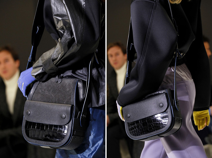 Минималистичная, но с множеством деталей, элегантная и брутальная, практичная и достаточно экстравагантная — все эти определения применимы к новой сумке Balenciaga из коллекции осень-зима 2012. По сути это гескьеровская версия главной сумки нового десятилетия — небольшой прямоугольной коробочки на длинном ремешке, которая должна быть в ассортименте каждой уважающей себя и желающей заработать марки.
