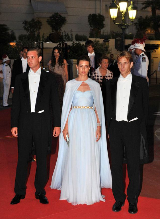 Шарлотта Казираги на гражданской церемонии бракосочетания появилась в сложносочиненном наряде Chanel из кутюрной коллекции весна-лето 2011, а для венчания выбрала платье нежного розового оттенка из той же коллекции. Но нам больше всего понравился третий наряд принцессы — голубое платье в пол от Giambattista Valli, открытый верх которого скрывала целомудренная накидка. Можно предположить, что на его создание автора вдохновил фильм "Поймать вора", где героиня Грейс Келли — бабушки Шарлотты — в одной из сцен появляется в платье идентичного фасона.