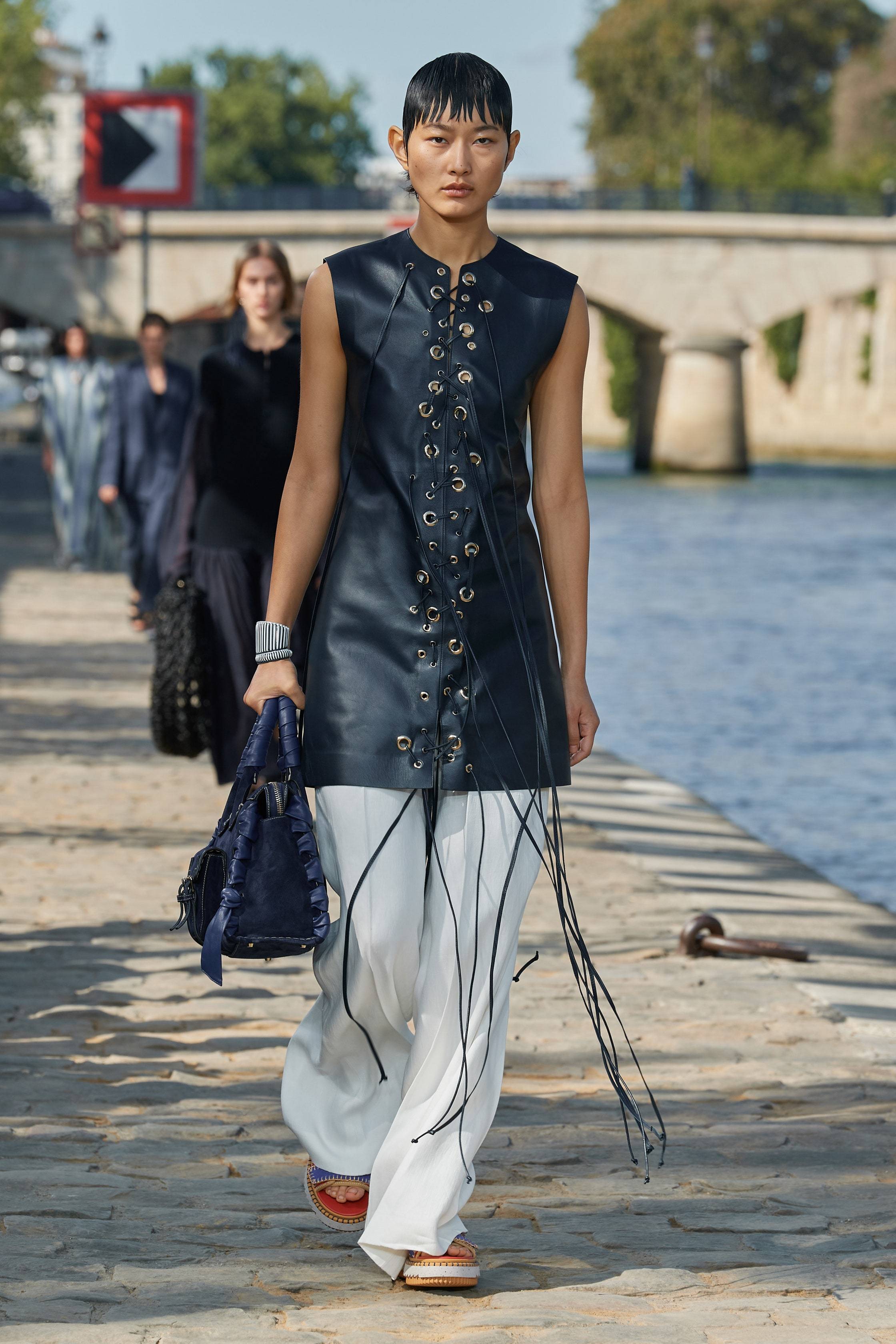 Поверх комбинаций и пальто, а также с тренчкотами в тон — так предлагает носить фартук, как у автомехаников, экс-дизайнер Celine Вероника Леони, которая на Неделе моды в Милане представила первую коллекцию собственного бренда Quira. У Hermès и JW Anderson кожаные фартуки, как у мясников, превратились в изящные прямые мини-платья.