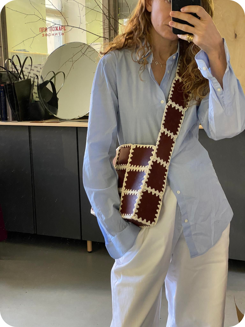 марка дизайнера Ксении Лапшовой выпускает лаконичные сумки, которые переживут все быстротечные тренды. Есть вместительные шоперы, в которые поместится ноутбук, и полукруглые варианты, которые можно носить несколькими способами, меняя ремни. Бестселлер Imakebags — сумка-книжка: компактная, без лишних деталей, с тремя отделениями и на широком ремне.