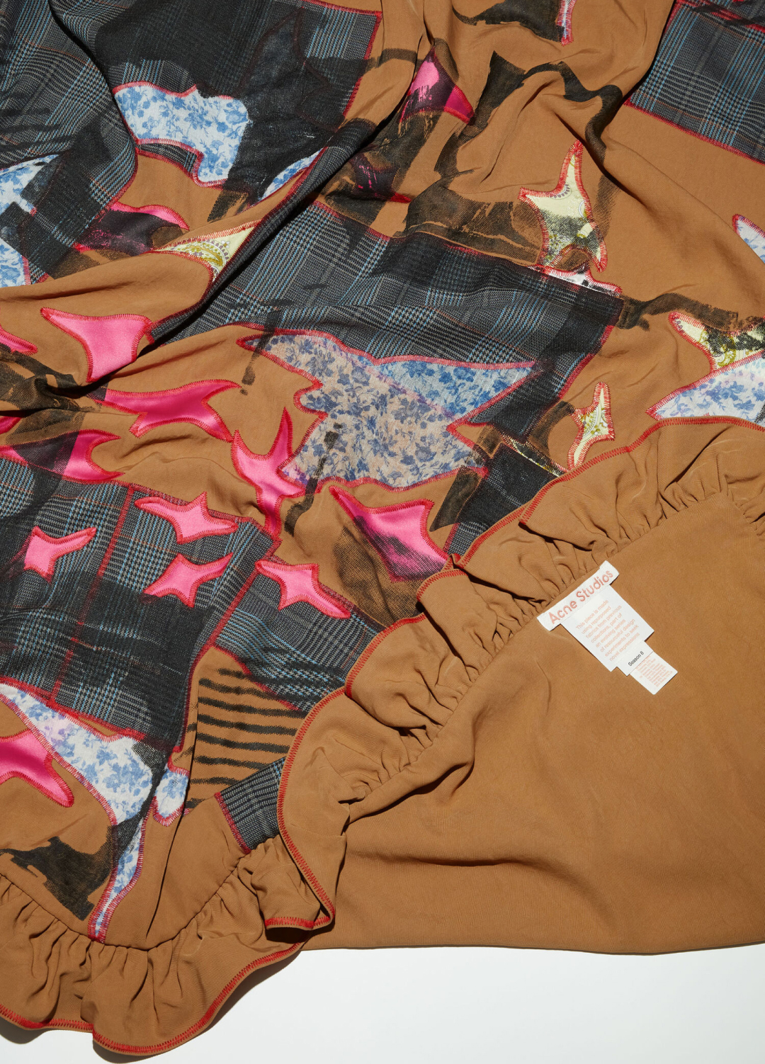 В этом сезоне креативный директор Acne сотрудничал с художницей Джесси Ривз. Она работает со старой мебелью: потрепанные диваны обтягивает органзой, из отживших плетеных кресел сооружает лампы. Для шведского бренда Ривз придумала украшения и покрывала — последние собраны по кусочкам из оставшихся материалов предыдущих коллекций Acne.