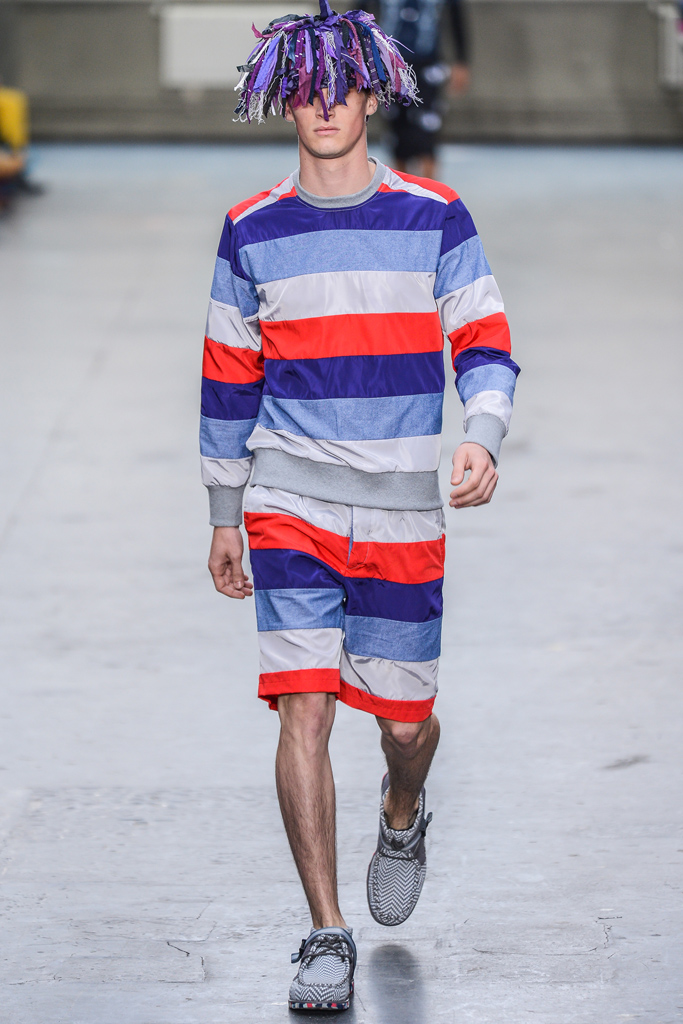 В полный восторг нас привели собранные, словно коллажи из разных тканей разных цветов, комплекты Кристофера Шэннона (Christopher Shannon), который был "без ума от цвета и фестивальных фотографий Джеймса Рирсона-Хоуэса (James Pearson-Howes)" и создал свое собственное "Лето любви".