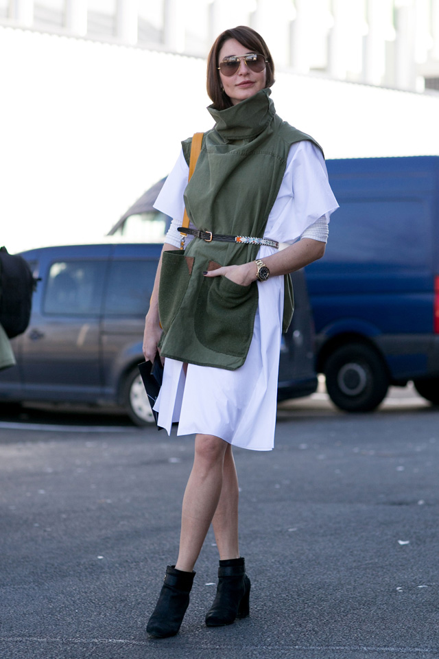 В Париже, очевидно, уже наступила весна — лучше всего это заметно, наверное, по Ольге Карпуть, которая радостно улыбается в камеру, накинув на обнажающее одно из плеч платье распахнутую шубу. И пушистая желтая сумочка в ее руке уж очень напоминает ветку такой же солнечной мимозы. Остальные девушки выглядят чуть более буднично, предпочитая образы нейтральнее, но от этого нисколько не проигрывают. Street style-хроники c этой недели станут отличным самоучителем для тех, кто хотел бы выглядеть стильно каждый день, но плохо представляет, как укротить моду и приспособить ее к повседневности. Здесь научат!