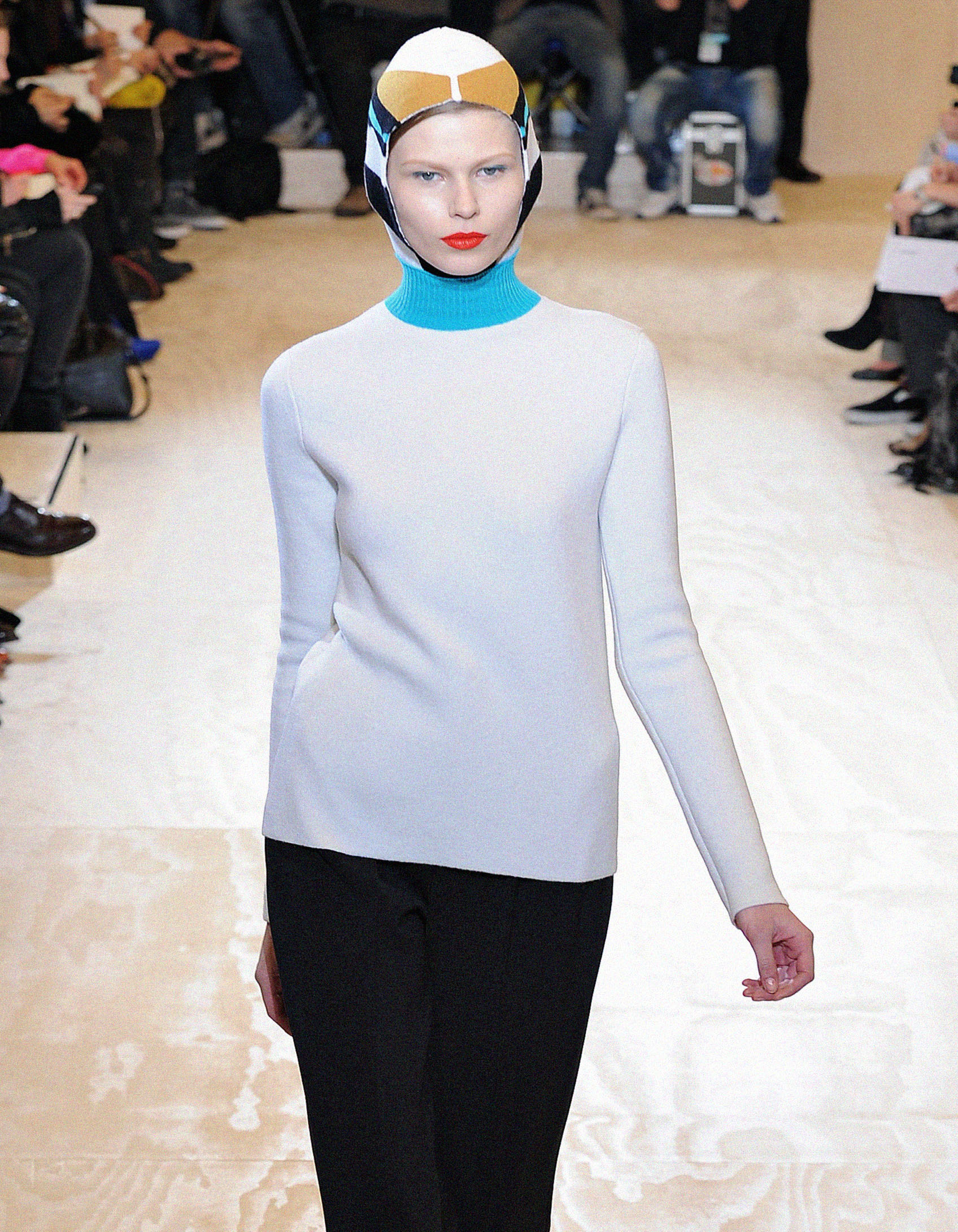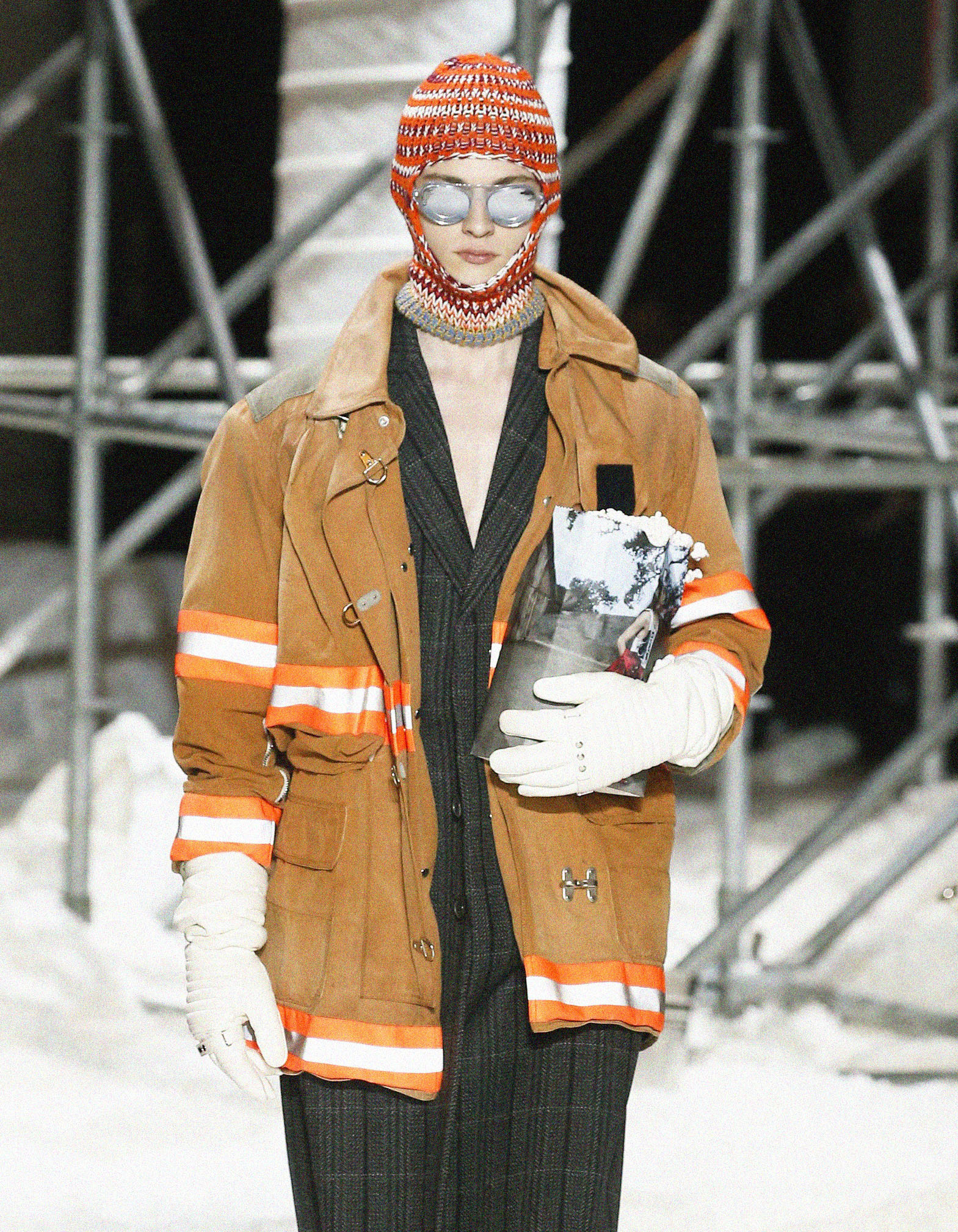 Если чуть углубиться в прошлое, то окажется, что подобный аксессуар время от времени использовали многие дизайнеры, но у каждого за счет особого настроения коллекции получалось вложить в него разный смысл. Раф Симонс — любитель исследовать субкультурные коды и переносить уличную моду на подиум, кажется, использовал балаклаву чуть ли не для каждого бренда, где успел поработать. Его коллекция весна-лето 2002 для собственной марки запомнилась тем, что модели вышагивали по подиуму босиком, с факелами в руках и балаклавами на головах. В коллекции Jil Sander осень-зима 2011 он вдохновляется фотографиями авторства Луизы Даль-Вульф с лучших горнолыжных курортов и добавляет разноцветные балаклавы, которые больше напоминают лыжные шапки, тем самым не нарушая выверенный интеллектуальный шик бренда. И, конечно, в коллекции осень-зима 2018 для Calvin Klein он не обошел тему стороной и создал вязаные аксессуары, которые в сочетании с инфантильными свитерами или строгими пальто выглядели нарочито небрежно, а порой даже странно.
