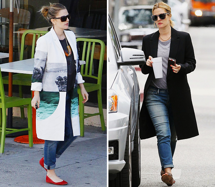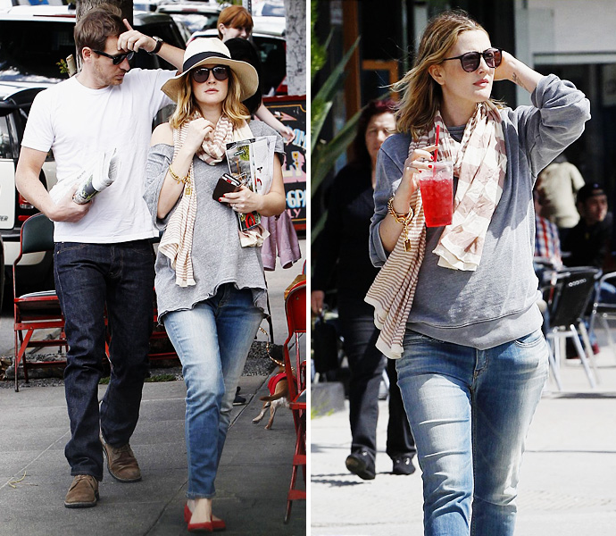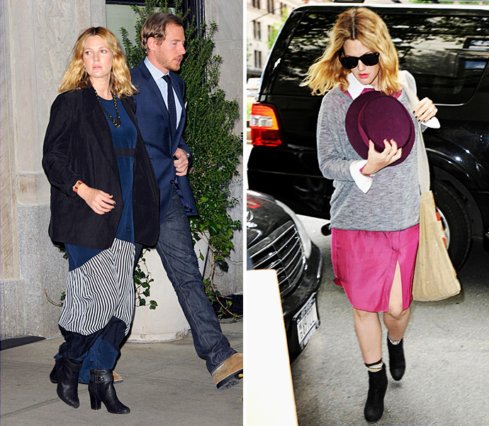 Давно мы не обновляли одну из наших старейших и любимейших рубрик, посвященную внешнему виду ожидающих рождения ребенка знаменитостей. Сегодня нашей героиней стала Дрю Бэрримор — 37-лентяя актриса, которая ожидает первенца. Напомним, что 2 июня Дрю уже будучи в положении вышла замуж за своего жениха арт-диллера и сына бывшего CEO модного дома Chanel Уилла Коплмана. Однако ни замужество, ни беременность не повлияли на привычки актрисы в одеже — она по-прежнему предпочитает мальчишеский стиль, джинсы, грубые ботинки, "мужские" блейзеры, толстовки и тельняшки, хотя для особенных поводов умеет правильно выбрать платье. А кроме этого нам испонирует ее любовь к аксессуарам: забавным солнцезащитным очкам, браслетам, ожерельям, шляпкам и кепкам.