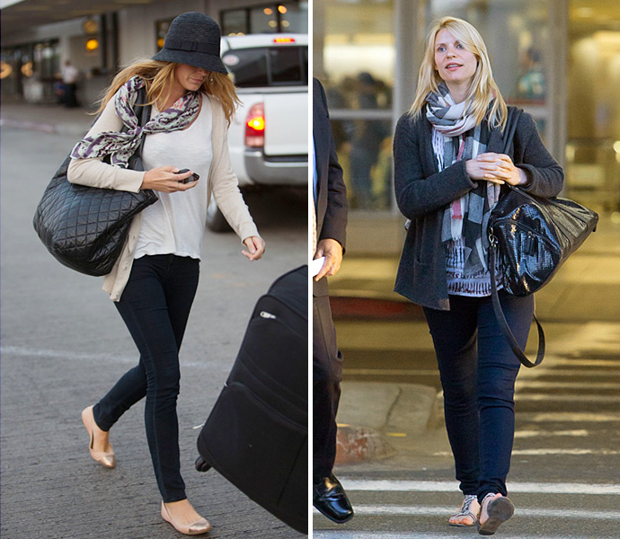 Тот факт, что лето плавно подходит к своему завершению, дает о себе знать: для путешествий звездные девушки все чаще выбирают не короткие шорты, свободные майки и открытые босоножки, а джинсы-скинни, ботинки, уютные кардиганы и кожаные куртки. Меняется и цветовая гамма дорожных нарядов: буйство красок и неоновых цветов уступило осенним благородным оттенкам: насыщенно-зеленому, бордо и модному в будущем сезоне глухому черному цвету. Но независимо от времени года свои позиции по-прежнему не сдают солнцезащитные очки всех форм и размеров, кепки и вместительные сумки, с которыми так удобно летать. Ведь удобство и комфорт — девиз любого путешествия!