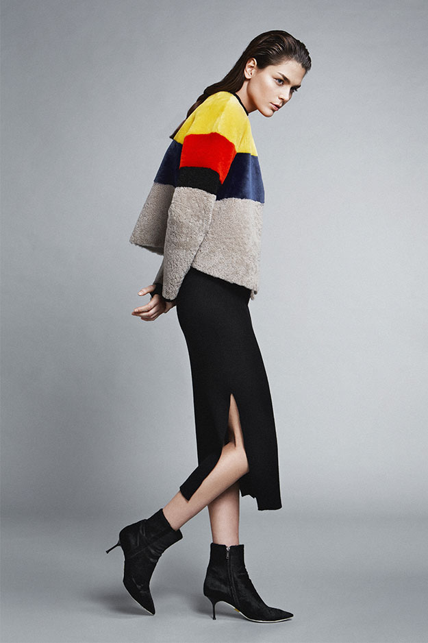 Новая женская коллекция тоже сделана не без задора и правильной дозы иронии. Это относится в первую очередь к верхней одежде: объемные и теплые шубы представлены в не по-зимнему сочных цветах — от красного до небесно-голубого, а укороченные полушубки — в радужной версии: из желтого, красного и синего меха.