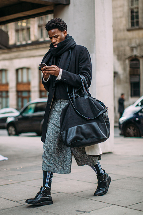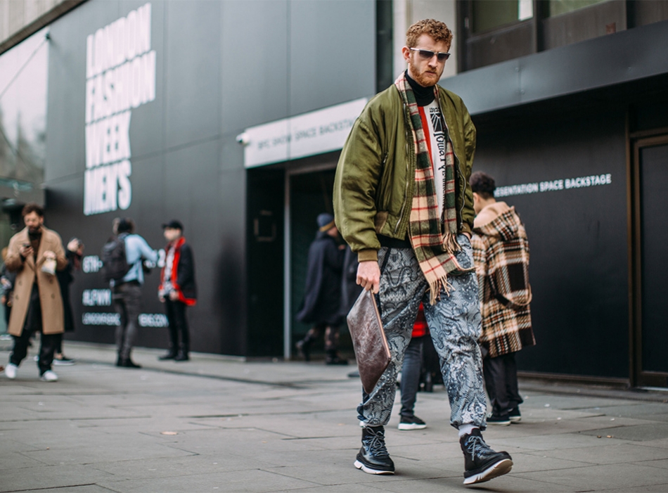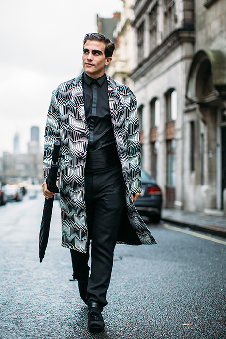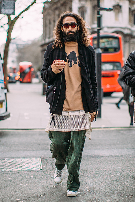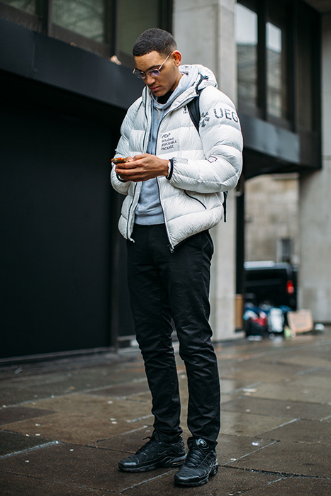 С 6-го по 9 января в Лондоне проходит мужская Неделя моды сезона осень-зима 17/18, на которую съезжаются байеры, журналисты, блогеры и модники со всего мира. Мы выбрали самые яркие образы первых двух дней показов, и, похоже, наши прогнозы главных тенденций на 2017 год подтверждаются: на улицах Лондона замечены яркие бомберы и пуховики, силуэты оверсайз, вещи с вышивками и крупной абстрактной графикой, а также массивные украшения и аксессуары.