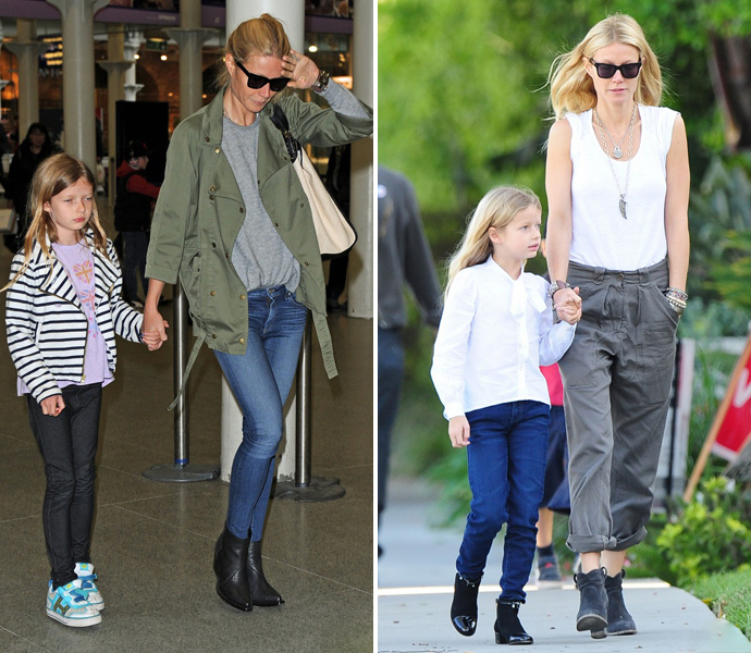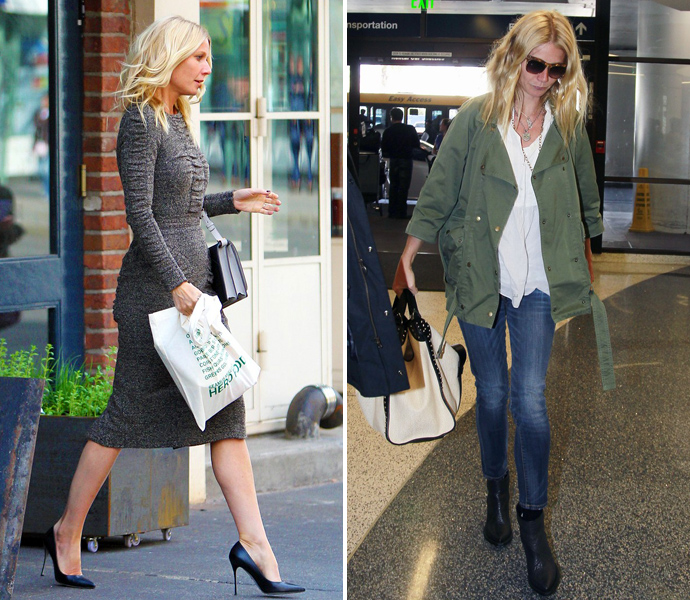 Последнее нам особенно приятно: Гвинет всегда одета правильно, ко времени и к месту. На прогулки с дочерью Эппл и сыном Мозесом она одевается просто и скромно, как обыкновенная мама двоих детей, — в джинсы, парки и кеды. А вот на премьеры, презентации и церемонии вручения кинонаград она может позволить себе яркие и иногда даже смелые платья. Помните, как все ахнули, увидев ее в полупрозрачном платье Antonio Berardi на премьере блокбастера "Железный человек 3"?