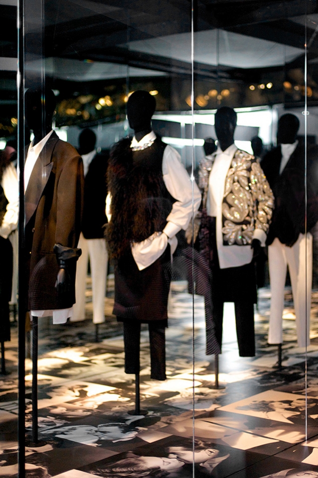 Огромный двухэтажный вернисаж состоит из вещей Dries Van Noten процентов на пятьдесят, не больше. Остальные экспонаты — это одежда мэтров вроде Кристиана Диора или Тьерри Мюглера, работы больших художников, фрагменты фильмов и безымянные предметы со всех уголков мира. По замыслу организаторов, одежда Дриса ван Нотена была вписана в общемировой контекст — как модный, так и культурный.