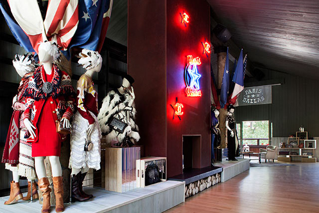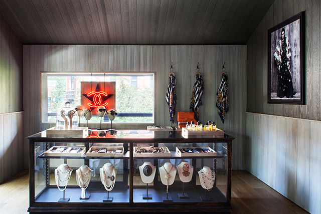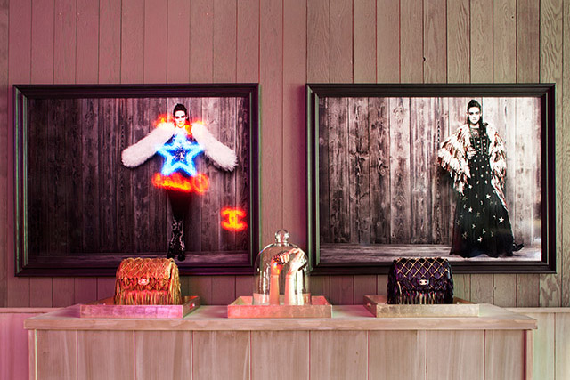 Временный бутик в Аспене будет открыт всего три недели, до 14 июля. Так что если вы не озаботились покупкой билетов заранее, есть высокая вероятность уже не успеть до закрытия, а интерьеры, созданные специально для pop-up store, стоят того, чтобы их увидеть. Главной точкой отсчета для дизайнеров стала круизная коллекция Chanel "Париж–Даллас", посвященная неочевидным, но тесным связям французского модного дома, его знаменитой основательницы и американского города. Поэтому бутик превратился в настоящий салун в стиле Дикого Запада. Хотя неоновых вывесок со звездами и логотипами Chanel, вписанными в эти звезды, во времена ковбоев и стычек с индейцами быть, конечно, не могло. Как и черно-белых фотографий из рекламной кампании коллекции с Кристен Стюарт, в рамочках висящих на стенах.