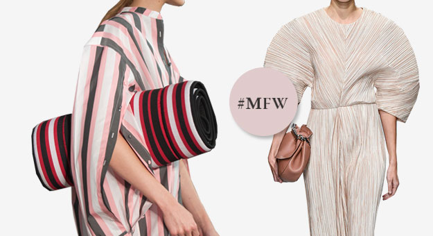 Как и в Нью-Йорке, в Милане одним из самых популярных мотивов стала полоска. Вариации разнообразные: широкие вертикали у Arthur Arbesser, трикотажные горизонтали миллиарда оттенков у Missoni, классические монохромные полоски на костюмных тканях у Jil Sander. MSGM процитировали спорт, добавив несколько контрастных полос на рукава платьев-топов из сетчатого трикотажа. У Ports 1961 множество вариантов пижамной полоски всех цветов на свободных рубашках и брюках, а также на трикотажных платьях.