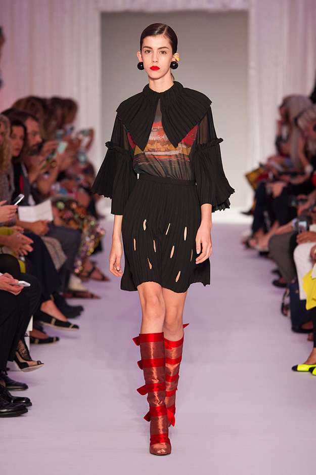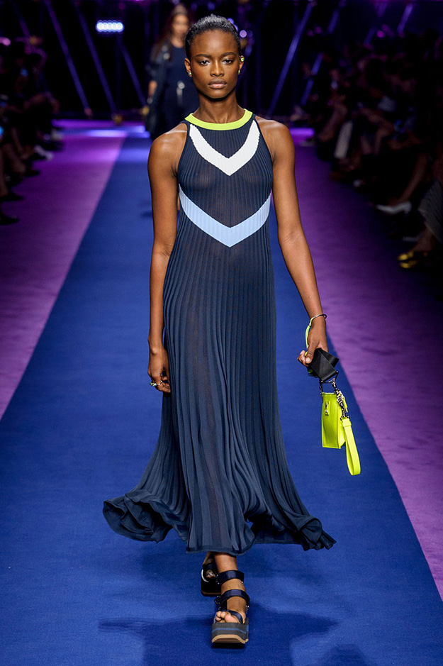 Во многих коллекциях этот прием используется на привычных юбках ниже колена (MSGM, Marco de Vincenzo, Wunderkind). Донателла Версаче применила плиссировку на трикотажных платьях: иначе они выглядели бы слишком просто. Складки ткани удачно дополняют минималистские спортивные силуэты в ограниченном наборе цветов. У Jil Sander плиссировка принимает совсем другой вид: украшает архитектурные формы футуристических платьев с объемными плечами.