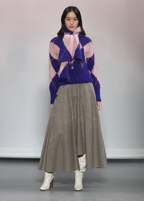 Вязаные свитеры в этой коллекции вдохновлены эстетикой альпийских горнолыжных курортов и стилем преппи. Тонкий светло-серый джемпер с узором в скандинавском стиле будет незаменим на прогулке субботним днем, а объемный красный или фиолетовый шерстяной свитер с геометричным узором «аргайл» удачно завершит ваш рабочий образ в будни. Подберите к нему юбку или брюки в мелкую клетку, создав остромодное сочетание.