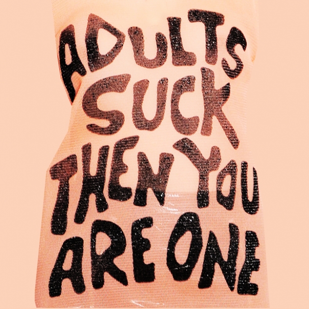 Яснее всех по вопросам взрослости и инфантильности на неделях мод высказался Джереми Скотт, без лишних сантиментов вынеся на футболку надпись "Adults suck, then you are one". Да, все дети мечтают вырасти, все подростки бунтуют против взрослых — а потом вырастают и неожиданно становятся "одними из них". Но в каждом все равно остается детская половина —которая радуется Бэмби и сердечкам, и взрослая — которая умеет эту радость маскировать. В том числе и в каждом дизайнере.
