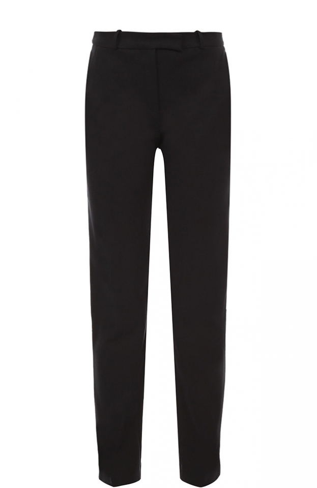Классические брюки прямого кроя — основа любого гардероба, не только униформенного. Они могут быть как зауженными, так и слегка расклешенными книзу. Цвет лучше выбрать не слишком броский: темно-синий, черный, бордовый, серый в тонкую клетку, бежевый или темно-зеленый — в самый раз. Классические — не значит скучные, всегда можно выбрать вариант, как говорится, с подвывертом — например, расклешенные черные брюки Valentino на спортивной резинке из нашей подборки.