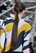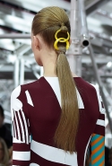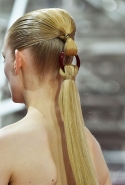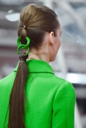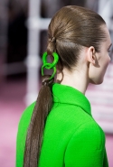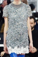 Одними сапогами, пусть даже и такими впечатляющими, дело не ограничивается. Симонс, вдохновившись экспериментами Пако Рабана, использует пластиковые детали везде, где только можно, даже в прически хитро вплетая крупные пластмассовые кольца. А платья, топы, юбки и все остальные вещи щедро покрывает вышивками по-настоящему кутюрной сложности.