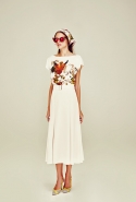 Например, полюбоваться замечательным принтом, который дизайнер марки Анастасия Романцова посвятила сказочной птице Алконосту.