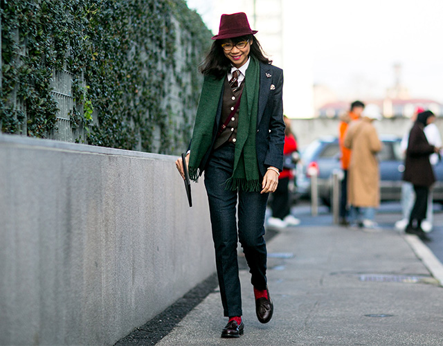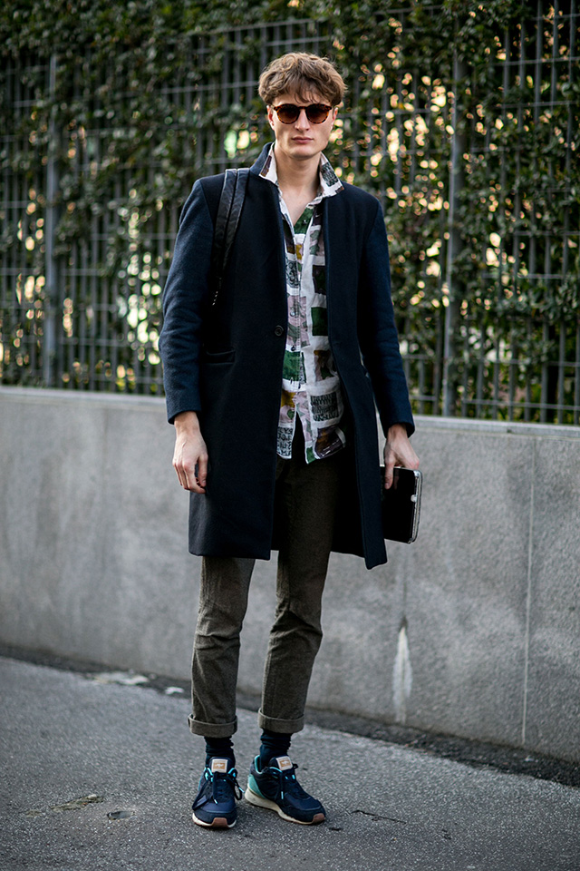 Мужские недели моды, по традиции, гораздо сдержаннее женских — это правило касается не только того, что происходит на подиуме и в зрительных залах, но и за их пределами. На улице перед заветной дверью, ведущей в мир моды, желающие туда попасть старательно борются за внимание street style-фотографов. Нашим героям, впрочем, за чье-либо внимание сражаться не приходится: они, благодаря своему яркому и запоминающемуся стилю, не остались бы незамеченными, даже если бы пытались скрыться. Вот и сейчас они променяли пестрые платья и безумные вещи Moschino на костюмы мужского кроя, вещи в теплой коричневой гамме и обувь на плоском ходу. Мужчины тоже одеваются в разы сдержаннее, чем каких-то три дня назад на Pitti Uomo, и отыгрываются в основном только в выборе кроссовок.