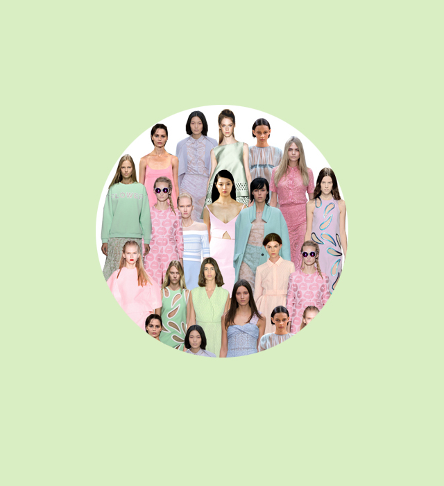 Мы выделили шесть тенденций, среди которых — пастель, расслабленный стиль ("чил-аут"), блестящие ткани, прозрачность, необработанные края и последнюю, под рабочим названием "мрачное лето". Пожалуй, самый интересный тренд — "мрачность": темные образы с косухами, меховыми жакетами, классическими черными брюками и массивными ботинками вообще-то нехарактерны для лета. А вот расслабленные образы с шлепанцами и широкими шортами — да, особенно после коллекции Celine весна-лето 2013, которая задала этот тренд прошлой осенью. С тех пор сандалии а-ля Birkenstock вместе с платьем-комбинацией принято носить с высоко поднятой головой — и так будет следующей весной.