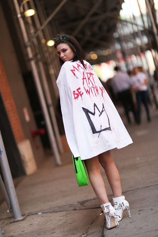 А вот и еще один Спанч Боб от Moschino — и снова появляется ощущение, что предчувствие тебя все-таки не обмануло. И пусть желтый обитатель дна океана самозабвенно показывает язык, как Майли Сайрус, с очередного платья-свитера, остальные модницы выглядят серьезно. Даже Анна Делло Руссо, известный провокатор мира street style, одета пока довольно сдержанно. Но ничего: впереди еще три недели моды, которые не дадут заскучать, и последний день в Нью-Йорке.