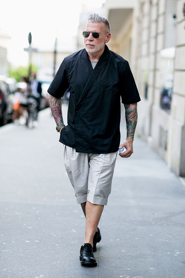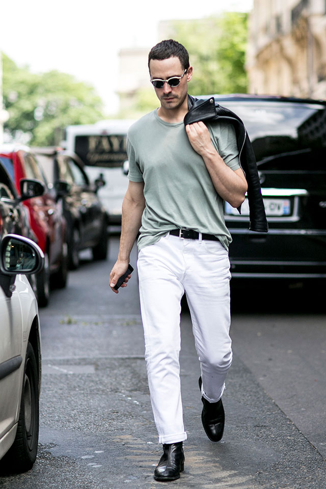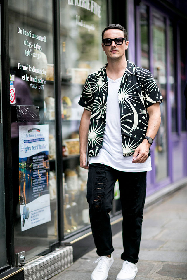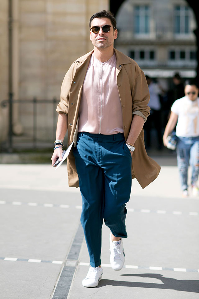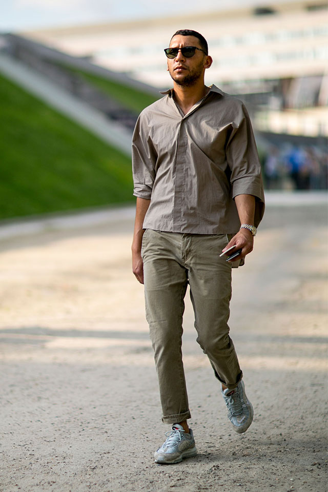 Парижское лето не изнуряет гостей недели моды жарой: сейчас температурный максимум достигает +25, к вечеру опускаясь до комфортных +20 градусов. Женщины, как обычно, погодные условия игнорируют, представляя весь спектр возможных стилей и униформ, мужчины же благоразумно одеты соответственно погоде, и многослойность здесь особенно в почете. Поверх базовых футболок накинуты замшевые жакеты и косухи, легкие плащи, бомберы и рубашки. В общем, без «капусты» летом — никуда.