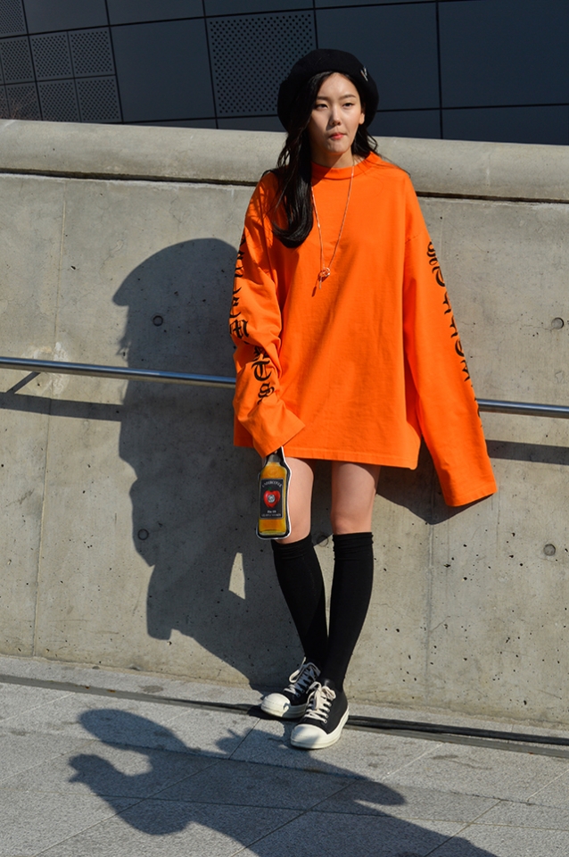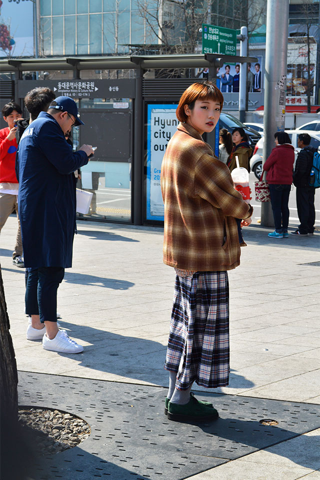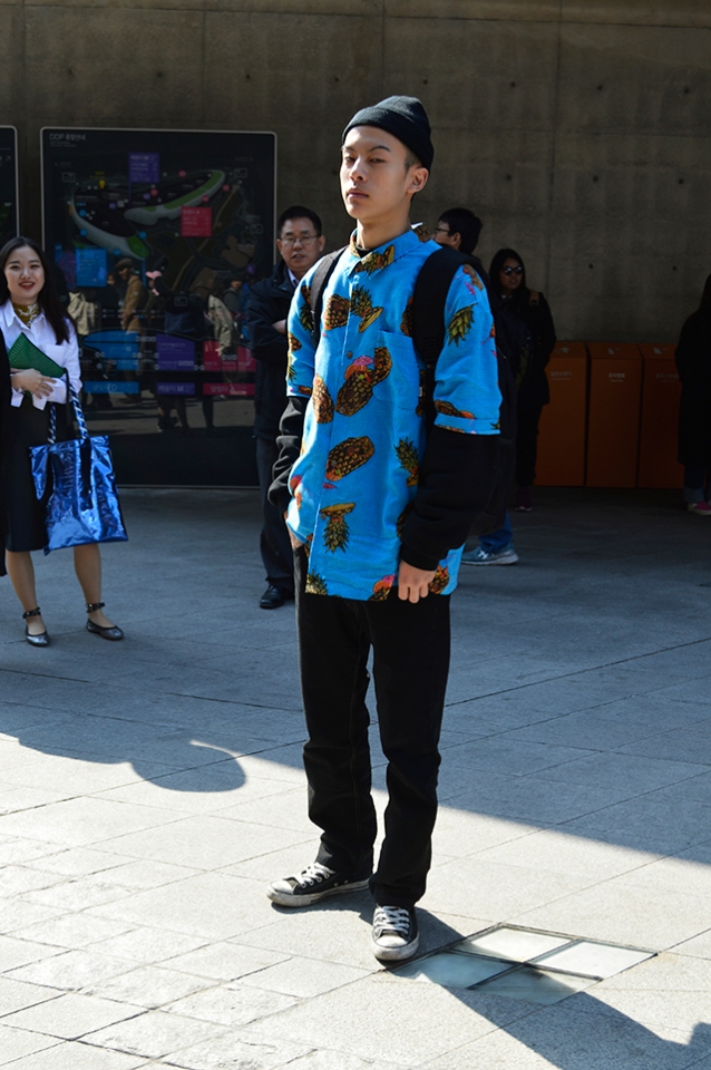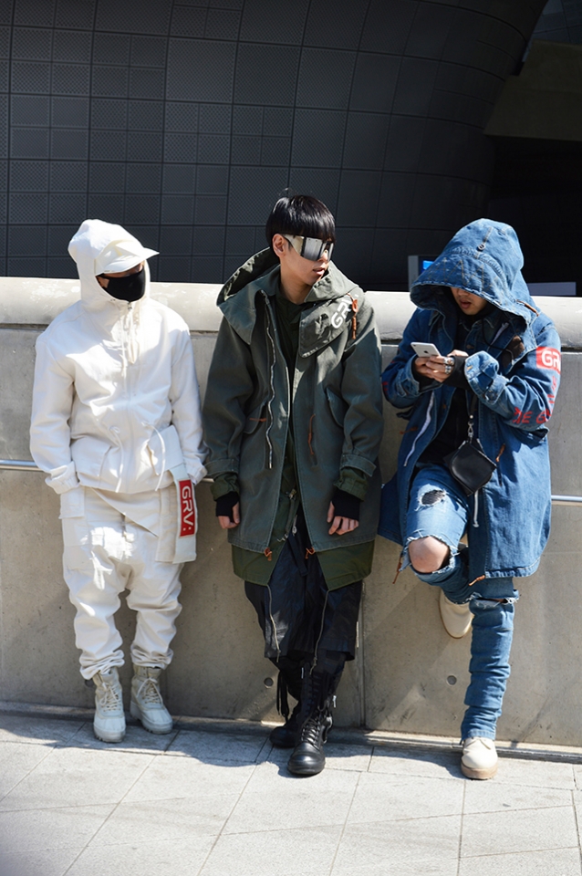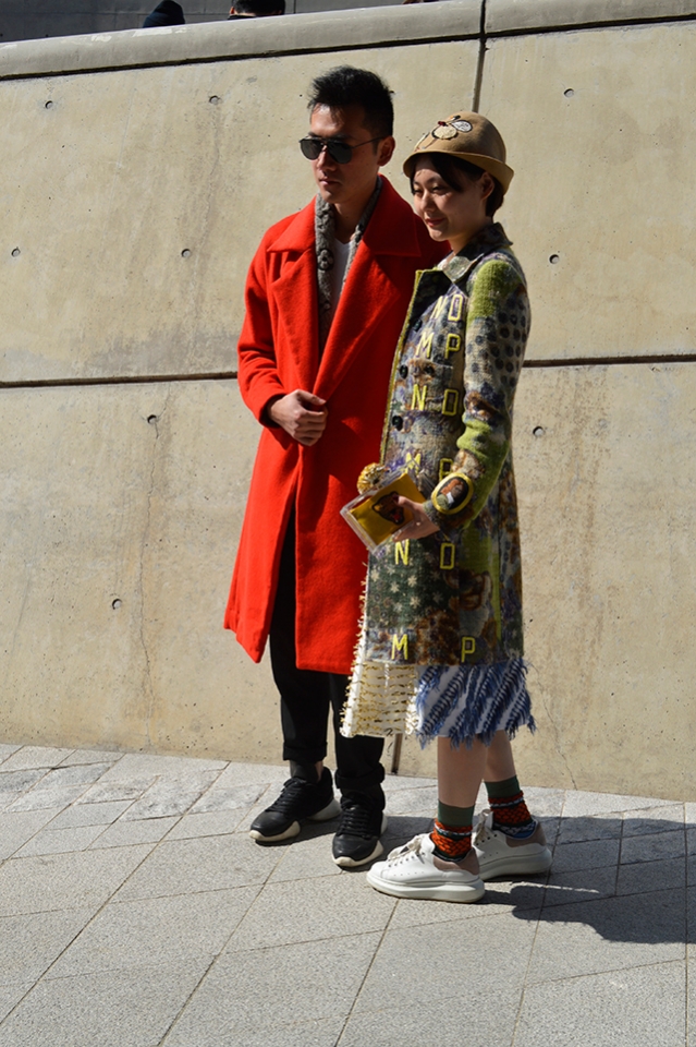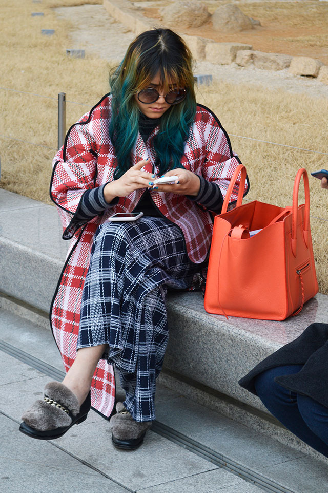 Конечно, цвет для осеннего сезона в Корее — это скорее исключение, чем правило. С этим согласятся все завсегдатаи местной недели моды. Но пока на подиумы выходят вереницы моделей в черных облачениях от VLADES, Byungmun Seo и D.GNAK, за стеклянными дверьми комплекса можно наблюдать совсем иную картину: под лучами яркого сеульского солнца бурлит, переливаясь яркими красками, разноцветная толпа местных уличных модников, которые всеми силами стараются попасть в объективы street style-фотографов. Здесь и мерзнущие в коротких шортах школьники, и девушки в разноцветных прозрачных платьях, и китайские трансгендеры, и разодетые в пух и прах годовалые дети, и томные нордические блондины, и люди в национальных костюмах, и эффектные африканцы. Последних, кстати, много как в первых рядах, так и на подиуме — такое ощущение, что организаторы пытаются провести работу над ошибками после постоянных обвинений в расизме, преследующих корейцев последние годы.