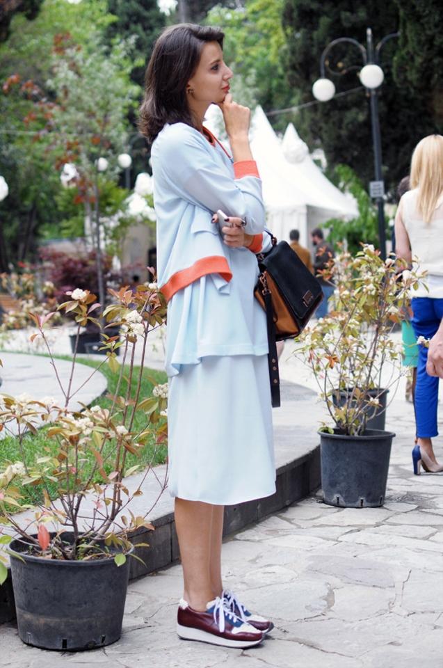 О любви местных модников к черному цвету ходят легенды: как нам объясняли некоторые друзья из Грузии, дело вовсе не в склонности к готике и пессимистичных взглядах на жизнь — этого о жителях страны точно не скажешь. Просто черный цвет очень идет темноволосым грузинским красавицам, и они об этом прекрасно знают. Фотографии street style с недавно прошедшей недели моды в Тбилиси отчасти подтверждают эту теорию. Да, черный цвет очень идет грузинкам. Но и другие цвета у гостей Tbilisi Fashion Week тоже в почете. Например, нежно-розовые вещи Atelier Kikala, которые впервые появились на подиуме во время этой же недели моды, уже выгуливали грузинские девушки: в платье-жилете из новой коллекции Ладо Бокучавы вышла в свет и Тако Чхеидзе, организатор TFW.