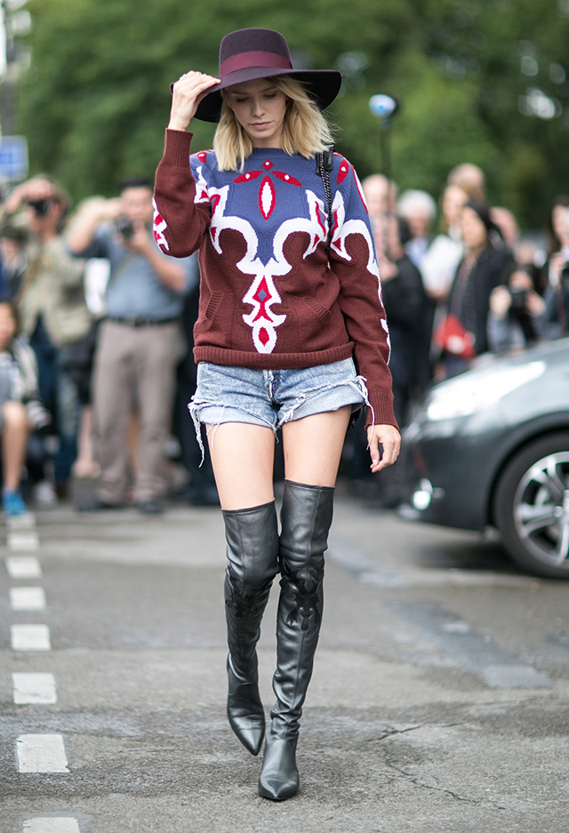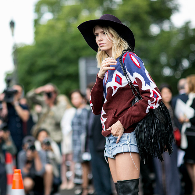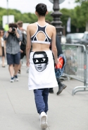 В центре внимания снова оказались и русские девушки, которые на каждой неделе моды неизменно привлекают внимание и фотографов, и случайно оказавшихся неподалеку прохожих. Лена Перминова подчеркивает свои и без того бесконечные ноги, надев коротенькие шорты и ботфорты, Катя Мухина стоит на площади в платье-комбинации, Эвелина Хромченко сразу бросается в глаза даже людям, от мира моды далеким, благодаря своему черно-белому пальто A.W.A.K.E, усыпанному петухами. Нам кажется, за то, что здесь собрались все без исключения, стоит благодарить Ульяну Сергеенко, на показы которой в Париж съезжается, судя по всему, вся модная Москва.