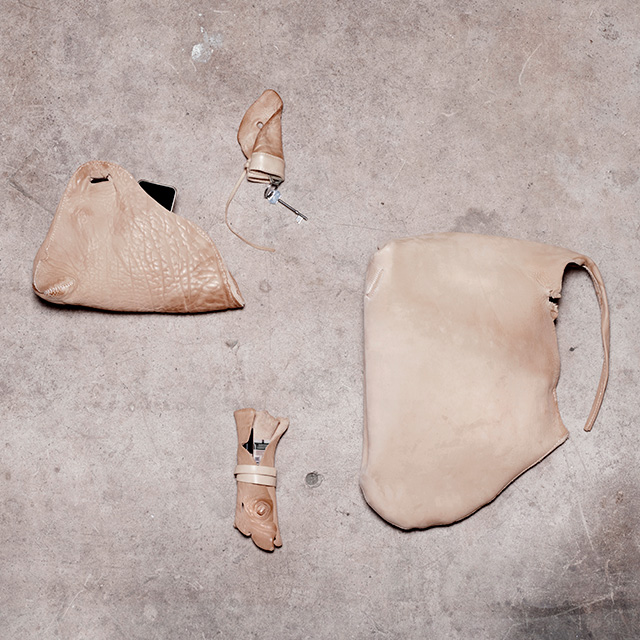 Другая студентка, Ренске Вербек, тоже сосредоточилась на естественных особенностях кожи — ее морщинах, жировых складках, разнооттеночности — и постаралась следовать этим неправильностям и увидеть в них красоту. Которую и воспроизвела в коллекции кожаных сумок Leather Nudes. "Мы носим сумку, прижимая к телу и делая ее таким образом частью тела, как будто это еще одна конечность", — читает Ренске.