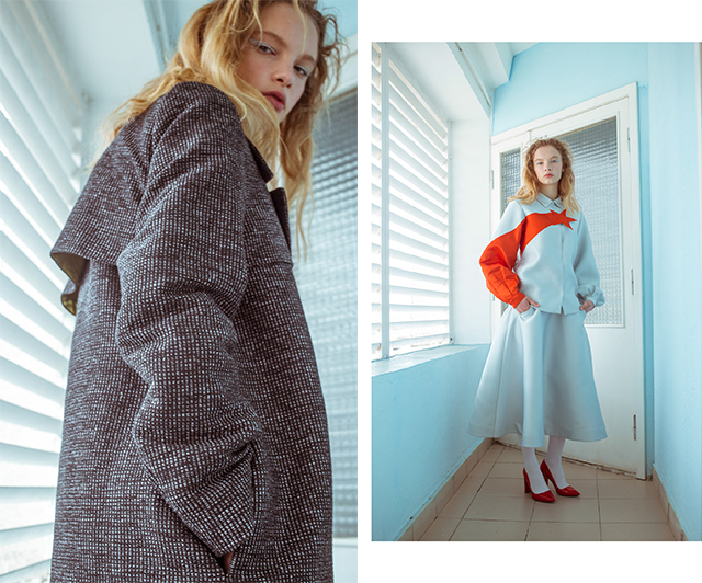 О новой, «космической» коллекции: «Меня во многом сформировали Рэй Брэдбери, Стругацкие, Воннегут. Воннегут в особенности. Люблю очень «Солярис» Тарковского. Кадры оттуда — это мой вневременной и внеколлекционный мудборд. Были у меня в голове и советские «космические» открытки. Все это интересует меня давно: я еще к Людмиле Норсоян в Fashion Factory пришла с мудбордом и эскизами как раз на эту тему. Я вообще фанат ретрофутуризма, всех этих фильмов про космос из 70-х. И кстати, выставка, которая проходила в политехе, тоже на меня повлияла».