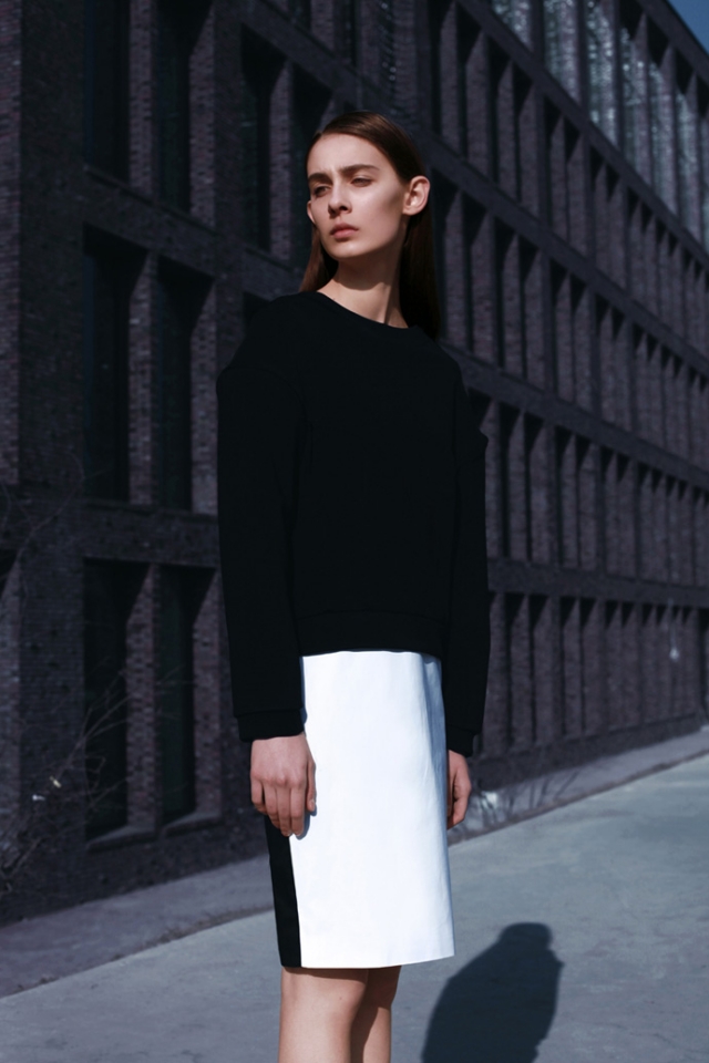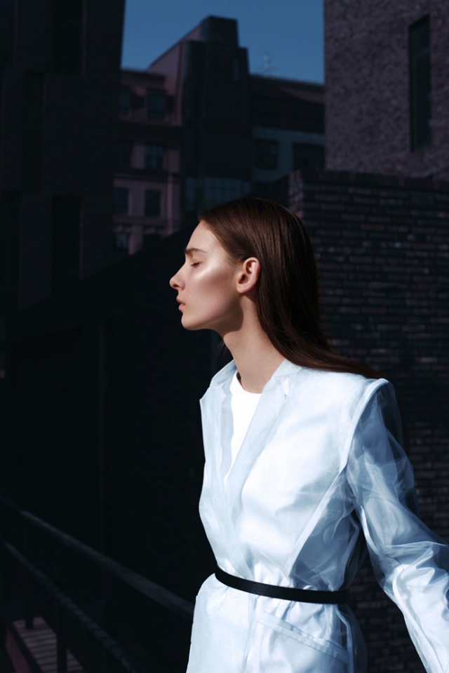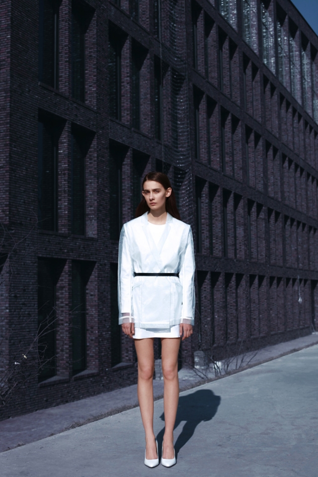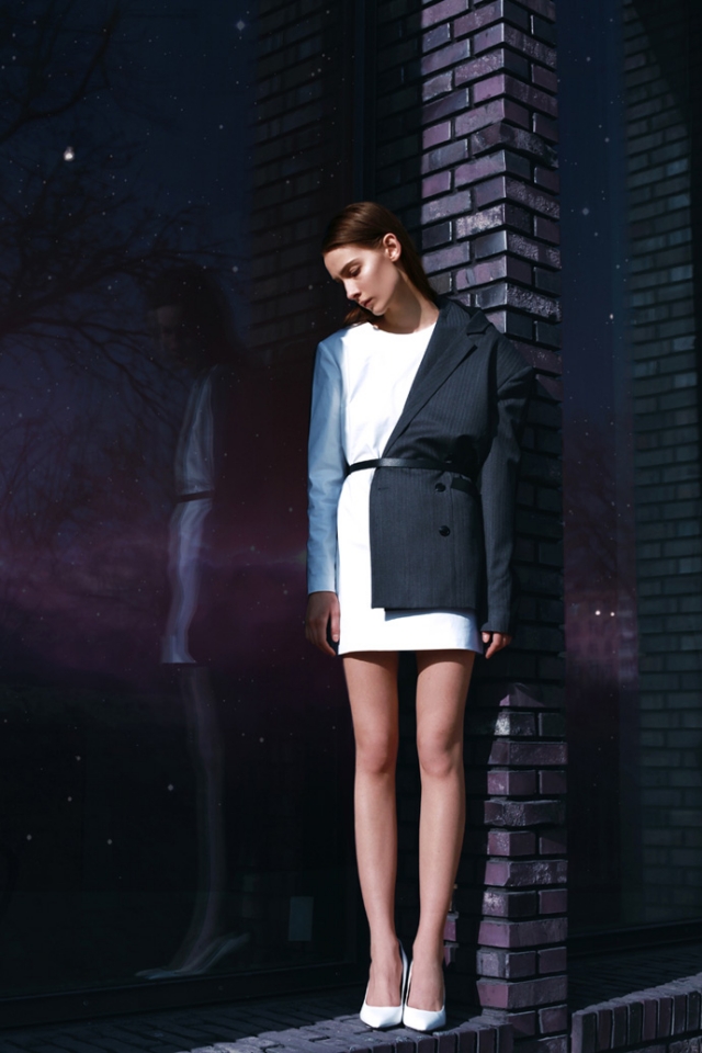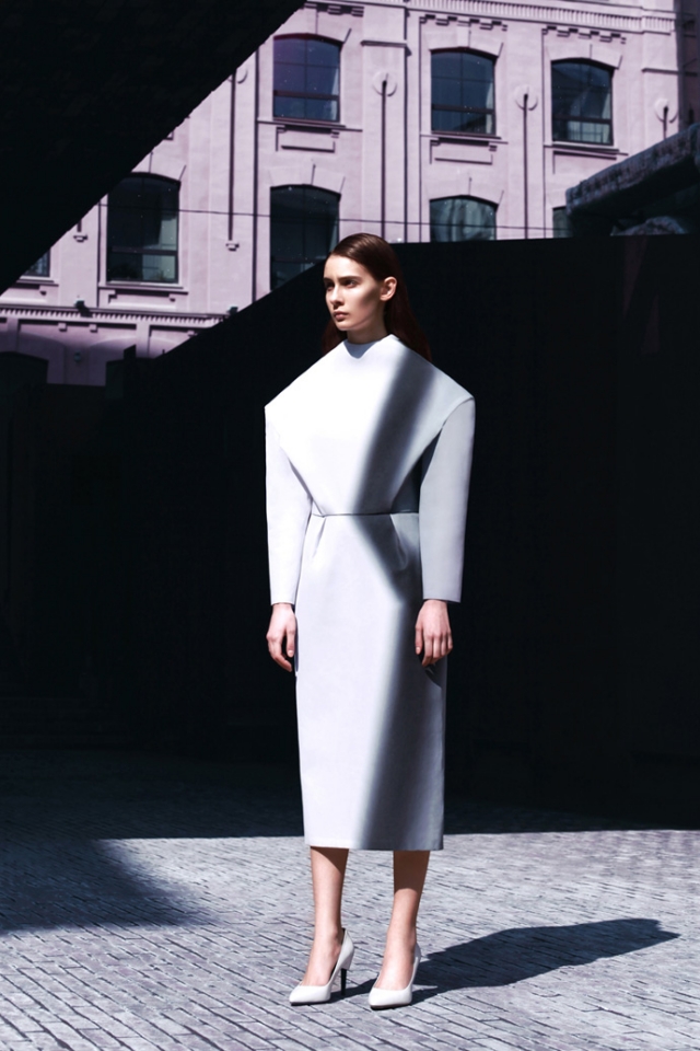 Здесь есть что-то от Рэй Кавакубо, что-то от Николя Гескьера времен Balenciaga, что-то от Вики Газинской, но главное, что присутствует, — концепция, желание идеально скроить, сшить и представить, донести задумку. "Мне хотелось проявить себя как художника, но одновременно с этим остаться дизайнером, — рассказывает Оля. — Я вдохновляюсь космосом вокруг себя, идеально ровными поверхностями в архитектуре, космическими людьми и их художественными произведениями. Моя героиня странная девушка с волшебной внешностью, которую мне хочется защитить". И у нее это получается.