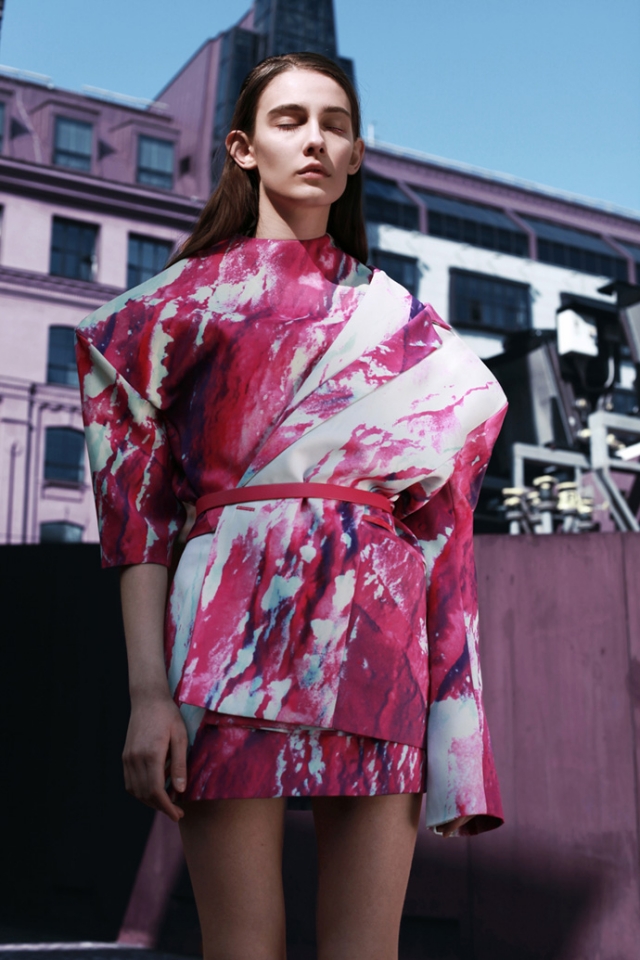 Buro 24/7 спешит поделиться лукбуком ее весенне-летней коллекции — на этот раз не об Америке, а о космосе, искусстве конструктивистов, сюрреалистичных фильмов начала прошлого века и физическом происхождении цвета. Основной бело-малиновый принт — не что иное, как снимки поверхности Марса и Луны, а геометричные объемные силуэты — скафандры космонавтов.